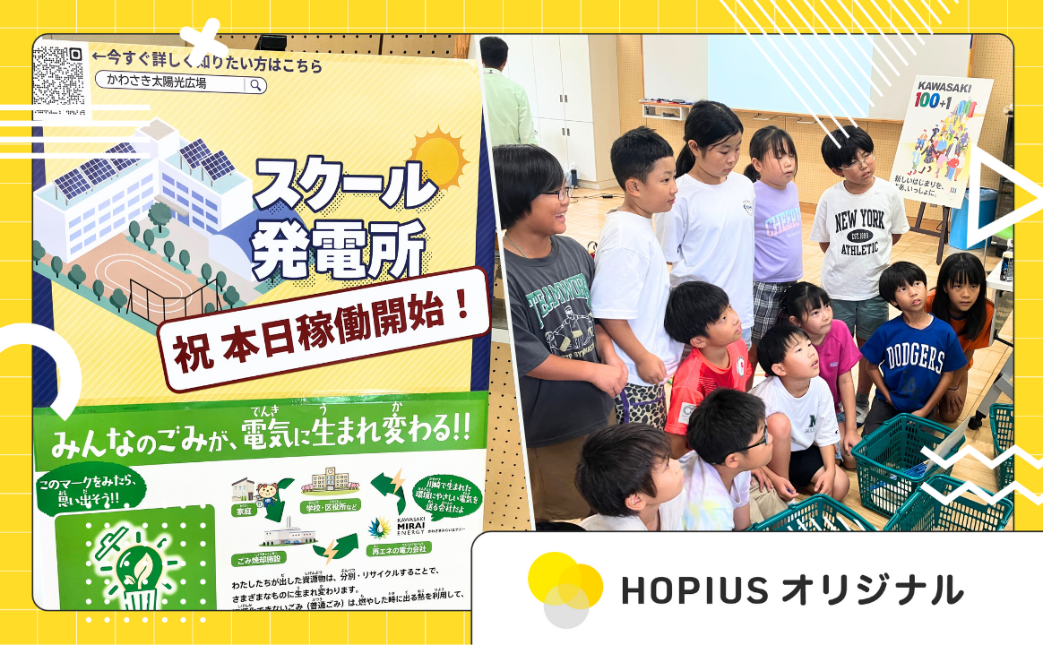 今回新たに「スクール発電所」や「川崎産グリーンエネルギー」に関する内容が盛り込まれたプログラムが、川崎市立菅生小学校で実施され、HOPIUSはこの学びの現場に密着し徹底取材。