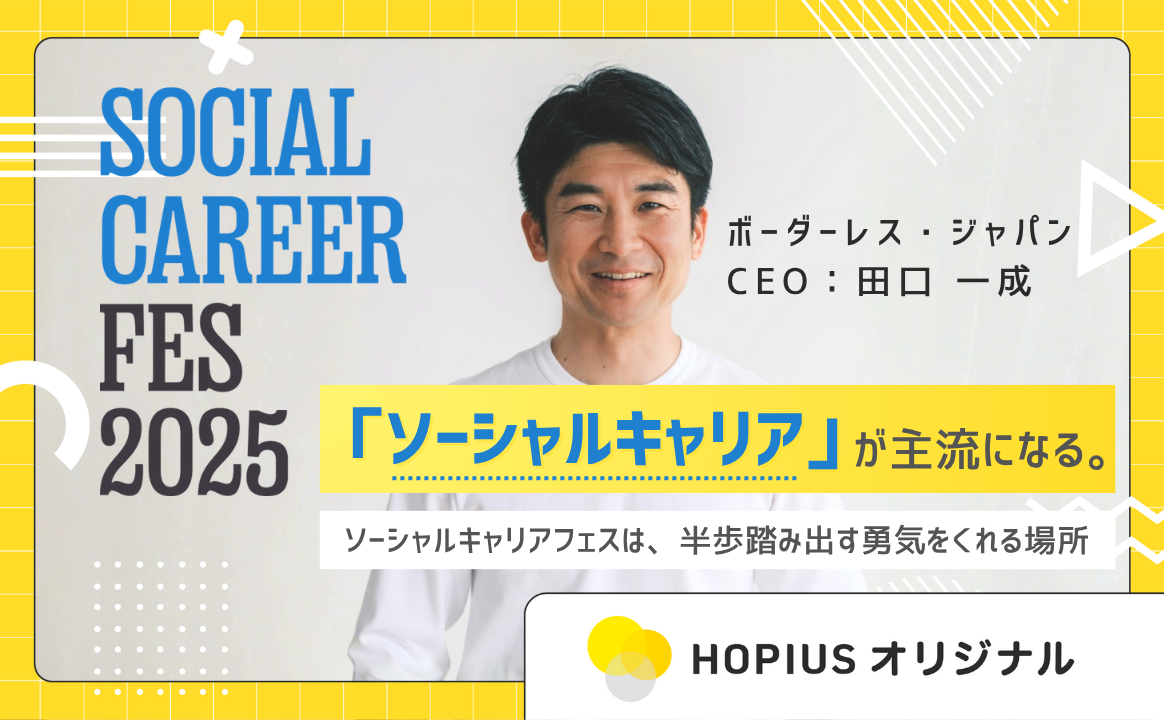 2025年11月に「ソーシャルキャリアフェス 2025」というイベントを企画しており、ホピアスでも社会意義を強く感じ、共催の立場でサポートしている。