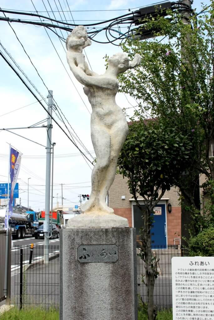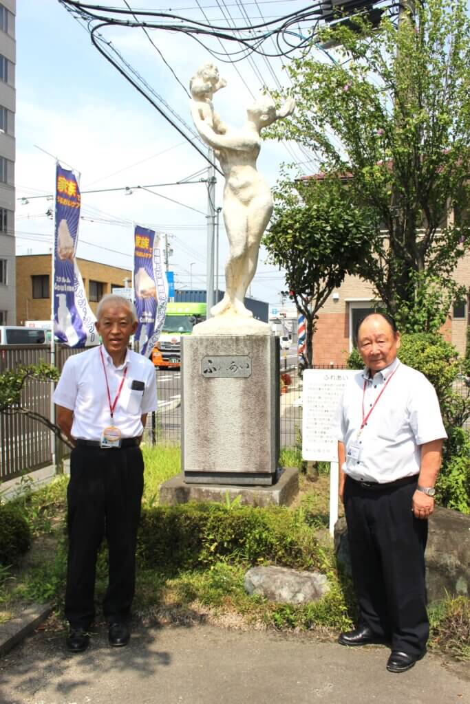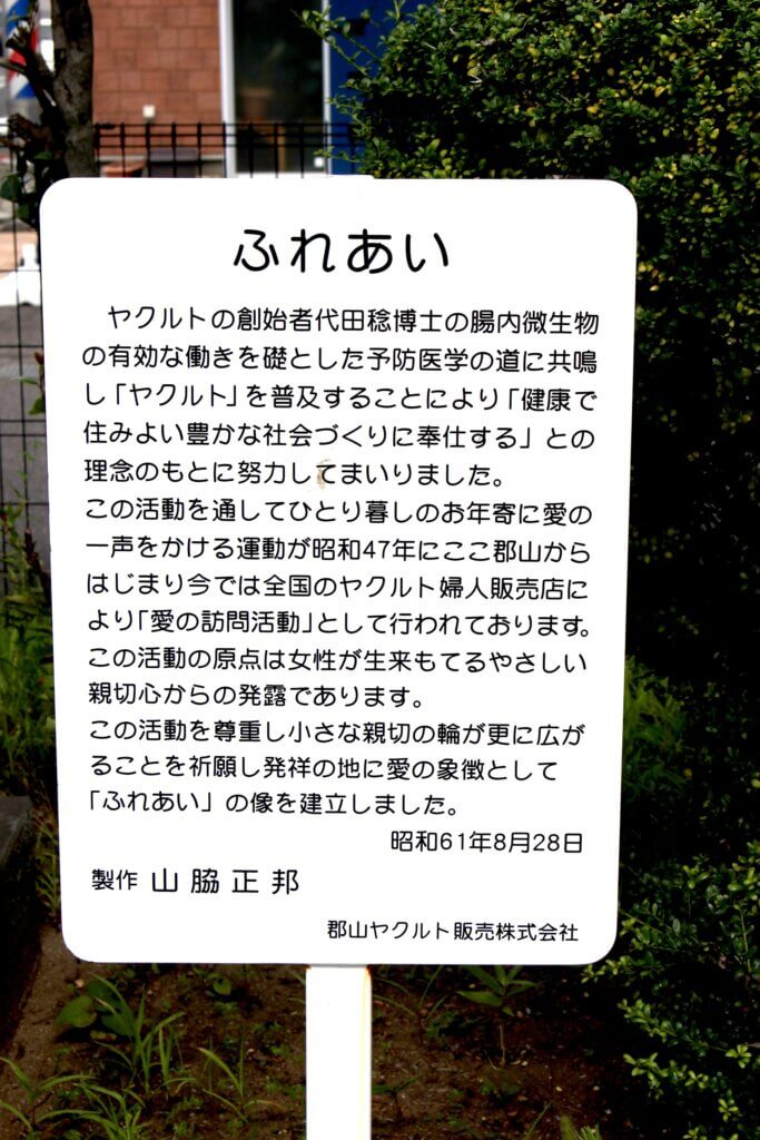 今、郡山ヤクルト販売の本社ビル前には、「ふれあいの像」が建っています。この名称は社員公募で決まりました。