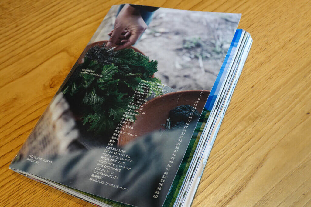 今も、あくまでも「ピザがおいしそうだから」という理由で来てくれる方がほとんどです。でも、いざ来てみると、テーブルには分厚いメニューが置いてある。そうすると、「これなんだろう?」と意識が向き、食事の裏にある食材のストーリーや生産者の声にふと気づく。
