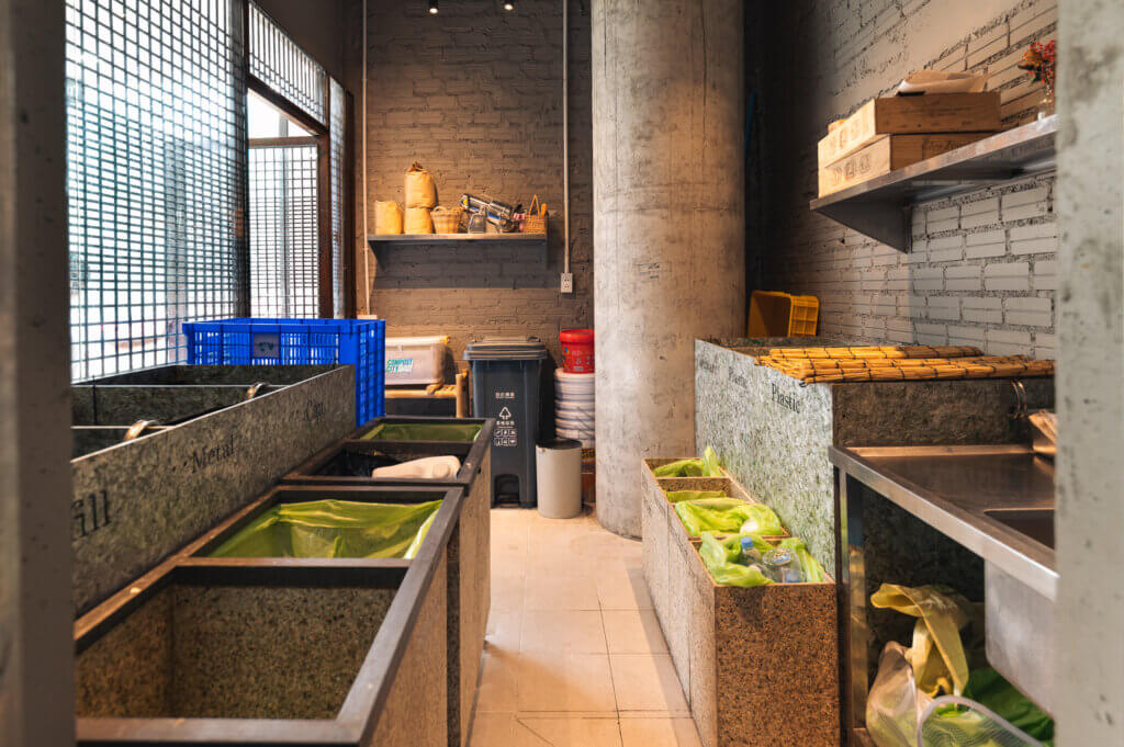 リサイクルルームの様子。誰もがゴミがリサイクルされている様子を見ることができる。(Pizza 4P’s提供写真)