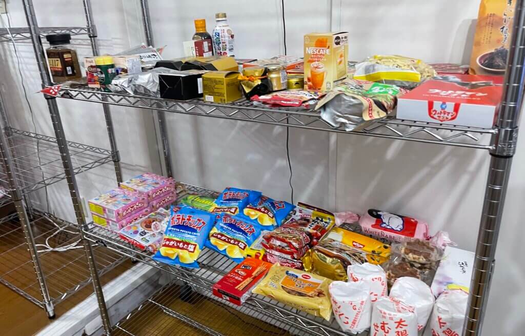 米や野菜、レトルト食品、菓子類まで、日常生活に欠かせない品が揃い、利用者が選びやすいよう丁寧に分類されています。