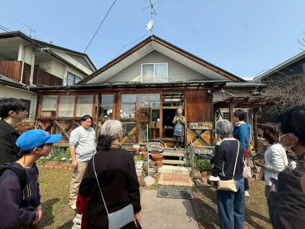 半田さんは参加者とともに巡った「お互いさまの街づくり」の拠点の様子と、実際の活動理念について解説。