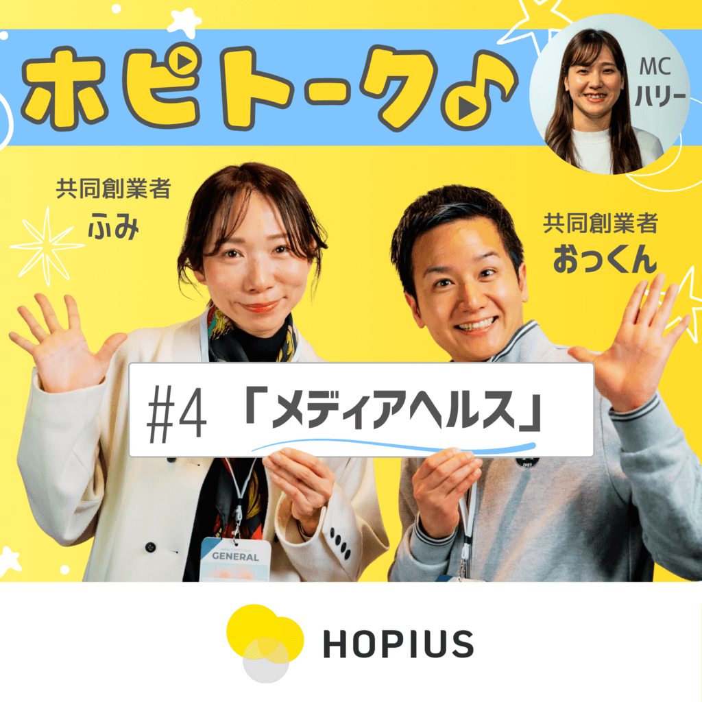 希望を届けるメディア「ホピアス」がお送りする「ホピトーク」は、ホピアスに関する様々なテーマを、ラジオ形式でおもしろ・楽しく、みんなで語り合っちゃおうというコーナーです。 今回のテーマは、「『メディアヘルス』ってなんだろう」。ホピアスで、心... -
