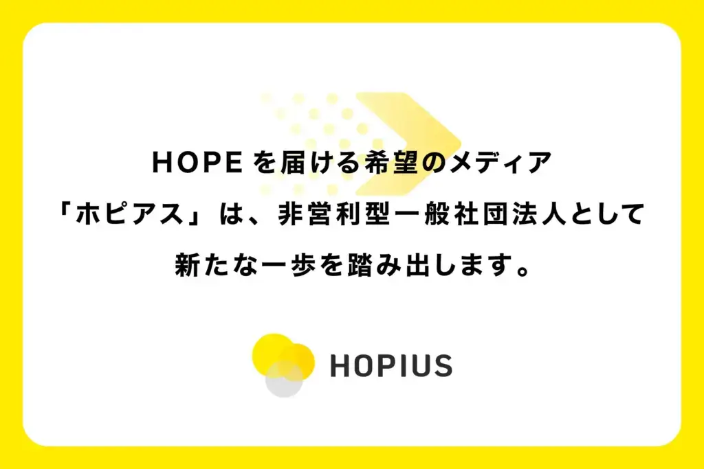 HOPEを届ける希望のメディア「ホピアス」は、このたび合同会社という営利法人から、非営利型一般社団法人へ運営体制を移行いたしました。今回の法人格の変更は、理念である“人類の希望の未来を照らす"をより社会的に体現し、透明性と寄付を基盤としたより... -